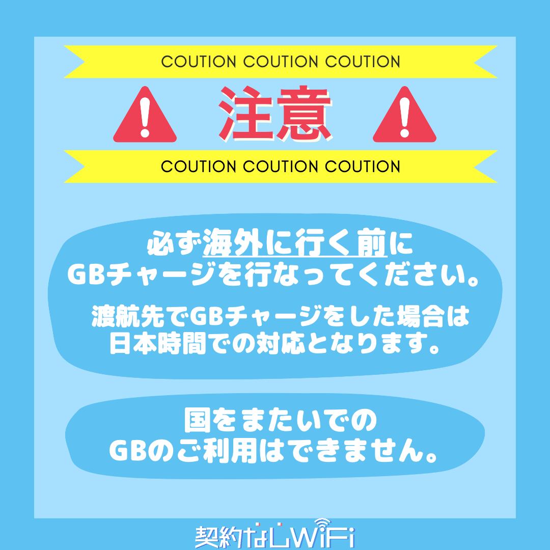 ・日本用のGBデータが残っている状態でも、海外用のGBチャージを購入する事ができ、渡航先で使用することができます。